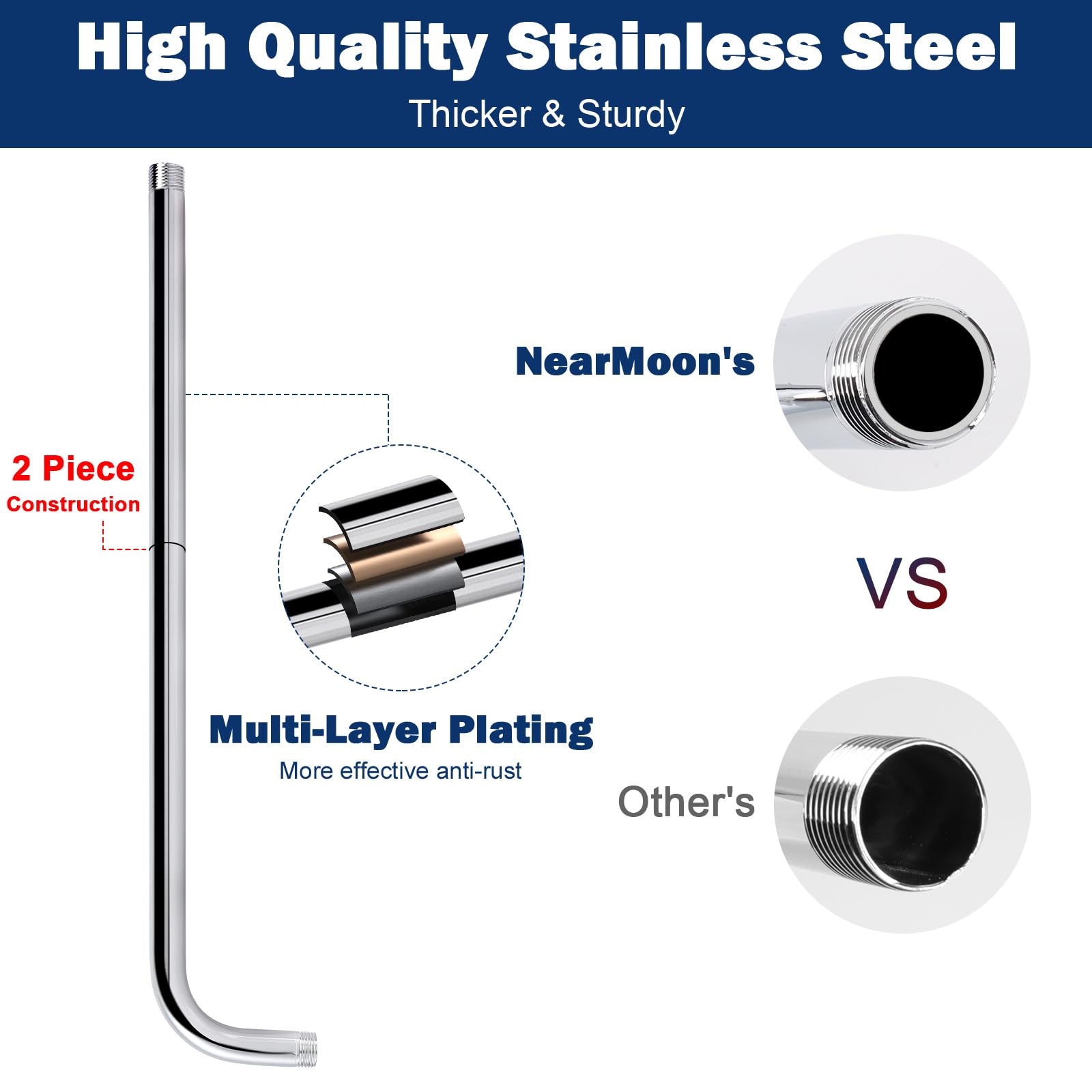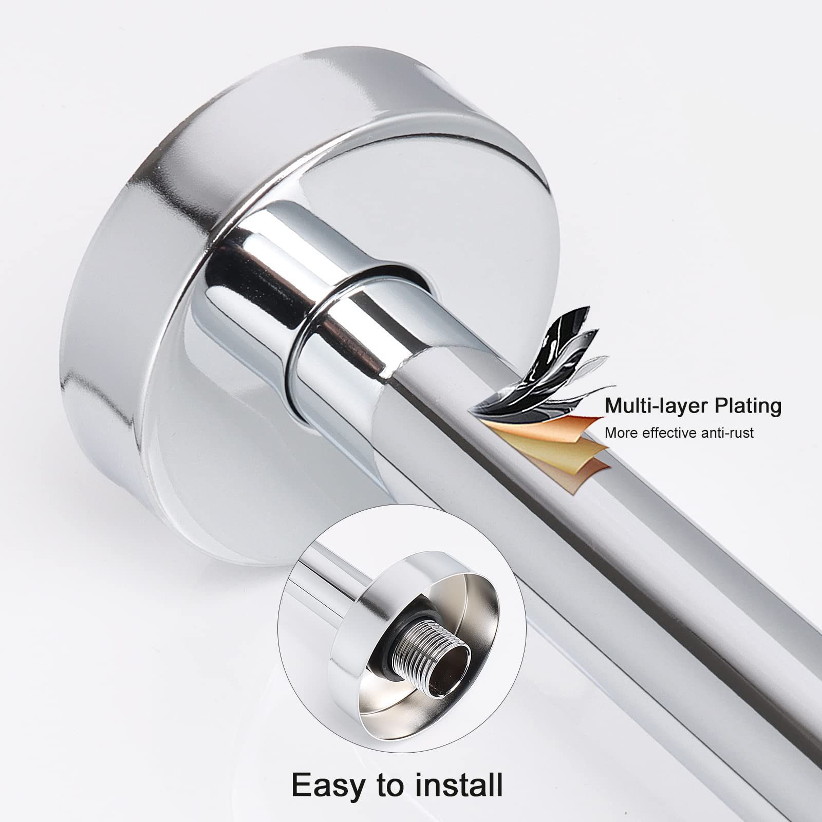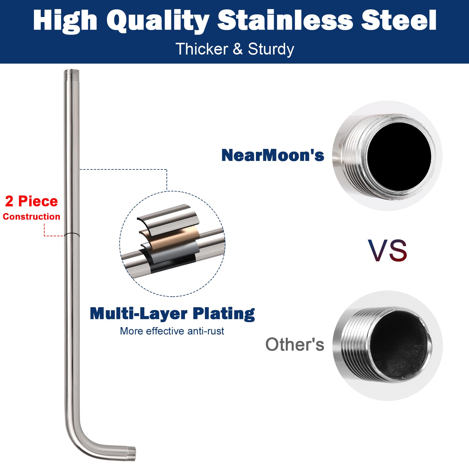 - LEAK PROOF AND RUST PROTECTION: Our shower arm is made of quality stainless steel with a high polished brushed nickel, rustproof and long-lasting durability