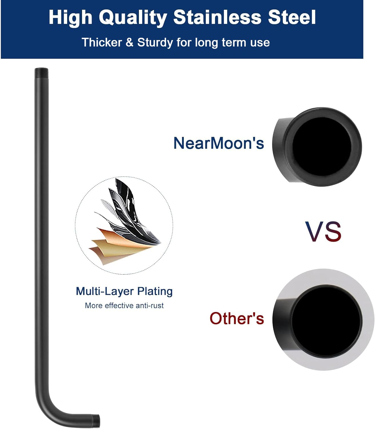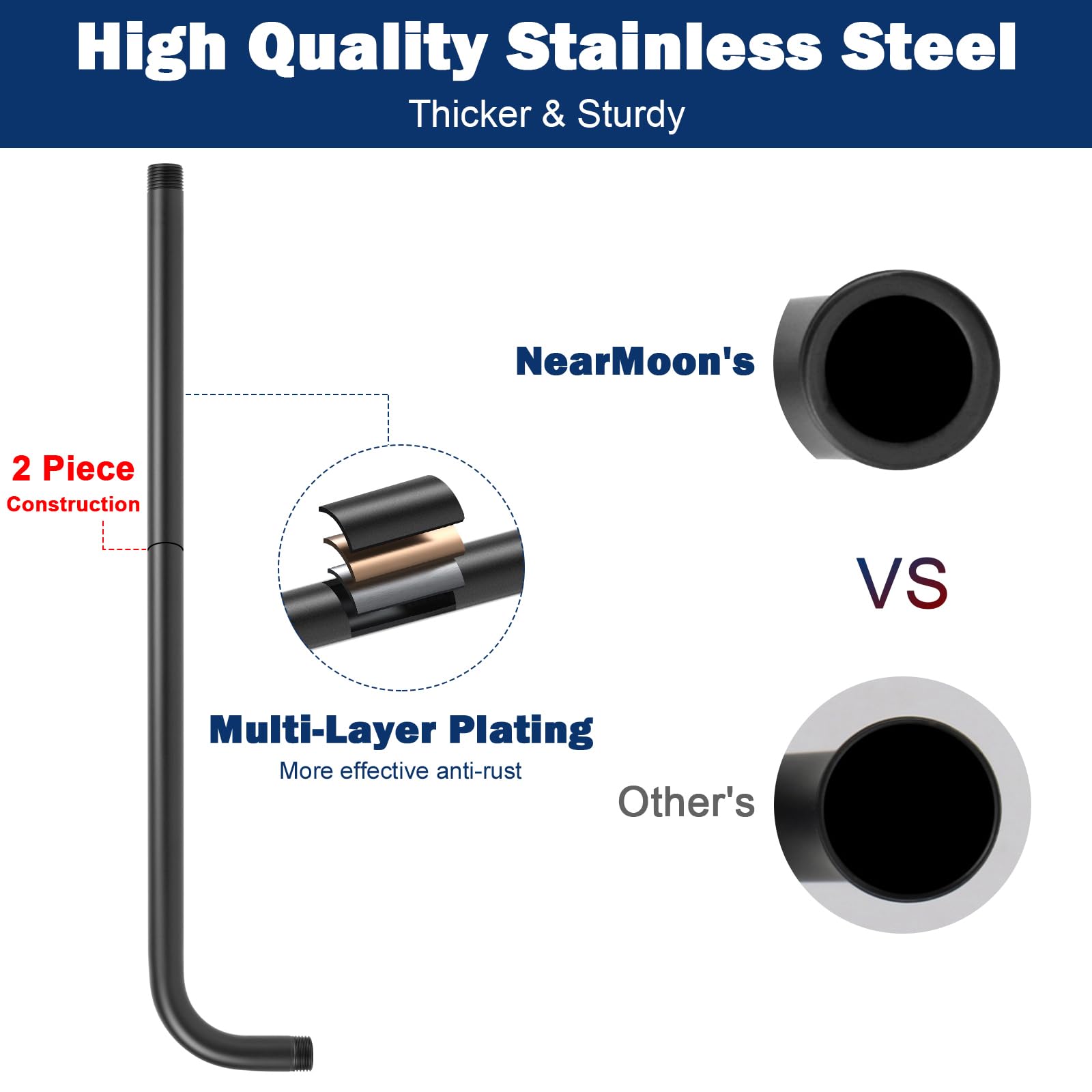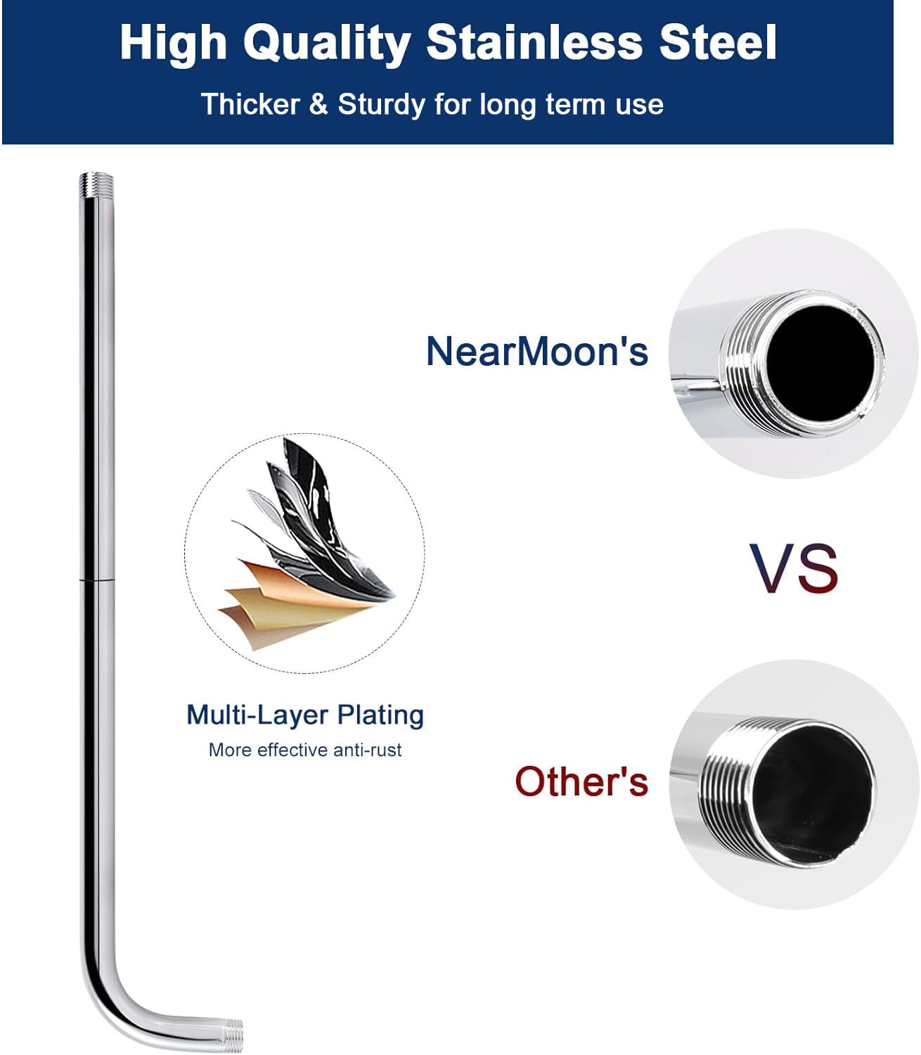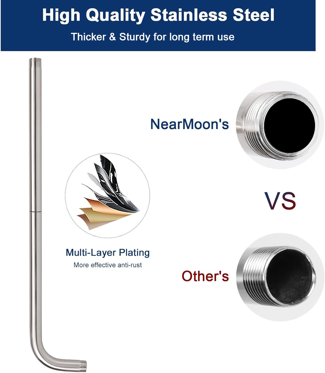 - LEAK PROOF AND RUST PROTECTION: Our shower arm is made of quality stainless steel with a high polished brushed nickel, rustproof and long-lasting durability